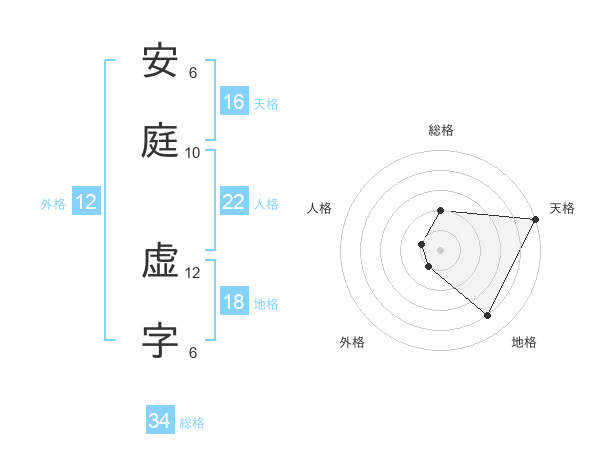 安庭 虚字さんを姓名の画数から五運を鑑定