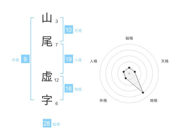 山尾 虚字さんを姓名の画数から五運を鑑定