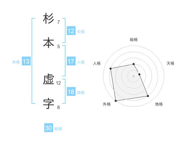 杉本 虚字さんの総格は30画の2点!