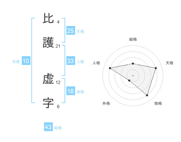 比護 虚字さんの総格は43画の2点!
