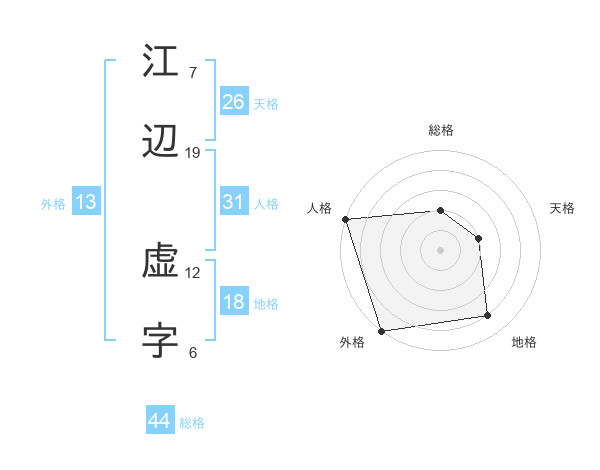 江辺 虚字さんを姓名の画数から五運を鑑定