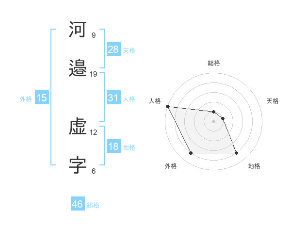 河邉 虚字さんを姓名の画数から五運を鑑定