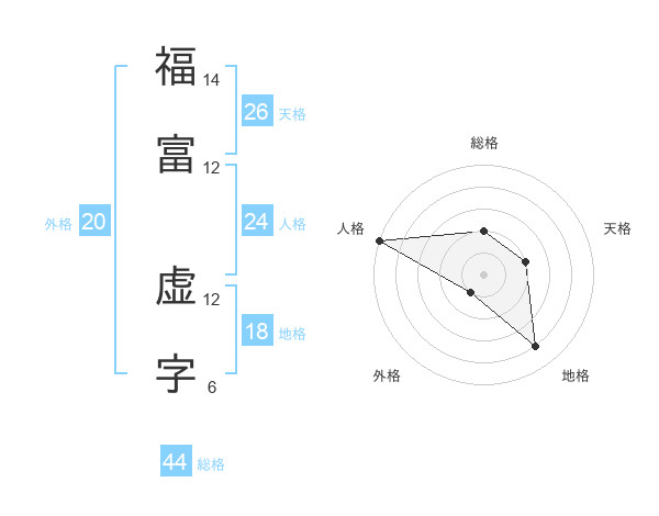 福富 虚字さんの総格は44画の2点!