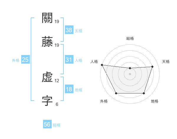 關藤 虚字さんを姓名の画数から五運を鑑定