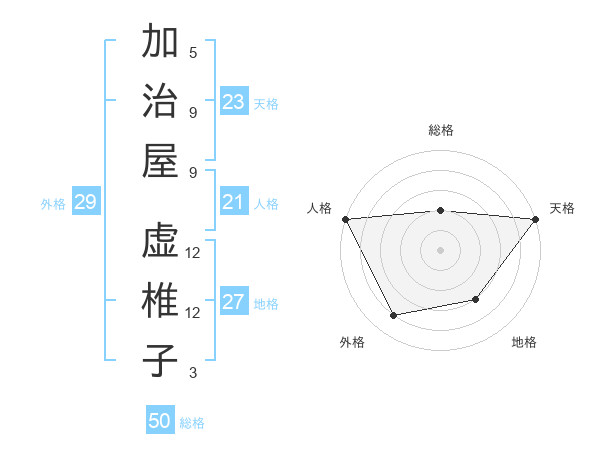 加治屋 虚椎子さんを姓名の画数から五運を鑑定