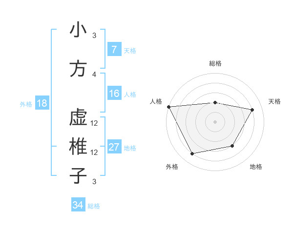 小方 虚椎子さんを姓名の画数から五運を鑑定