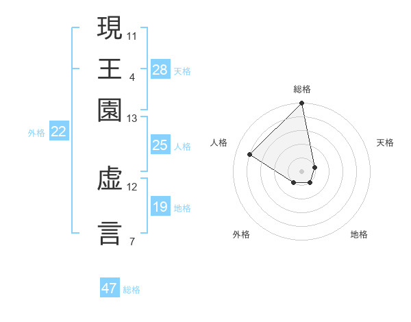 現王園 虚言さんを姓名の画数から五運を鑑定