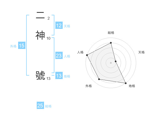 二神 號さんの総格は25画の4点!