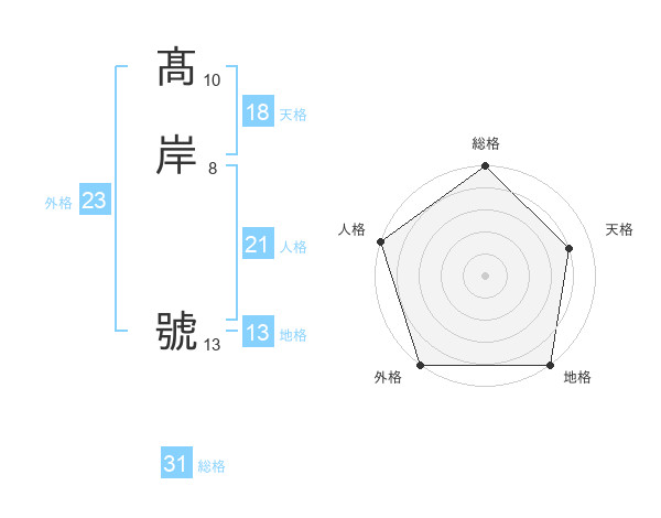 髙岸 號さんの総格は31画の5点!
