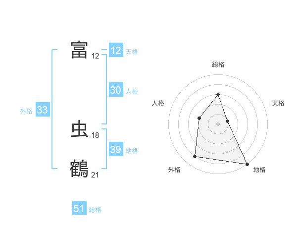 富 虫鶴さんの総格は51画の3点!