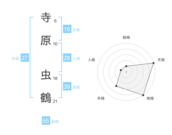 寺原 虫鶴さんを姓名の画数から五運を鑑定