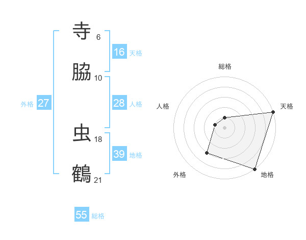 寺脇 虫鶴さんの天格は16画の5点!