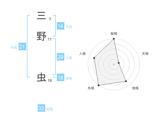 三野 虫さんの総格は32画の5点!