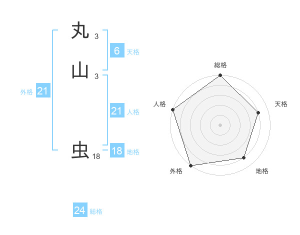 丸山 虫さんの総格は24画の5点!