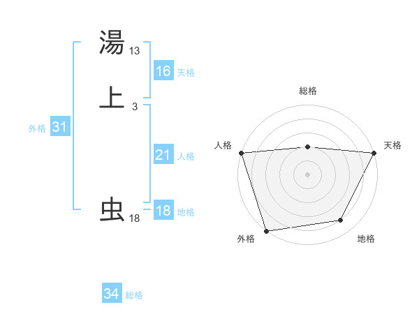 湯上 虫さんの総格は34画の2点!