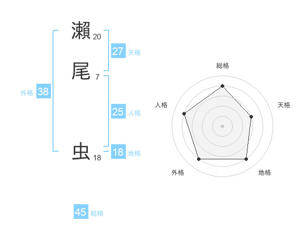 瀨尾 虫さんを姓名の画数から五運を鑑定