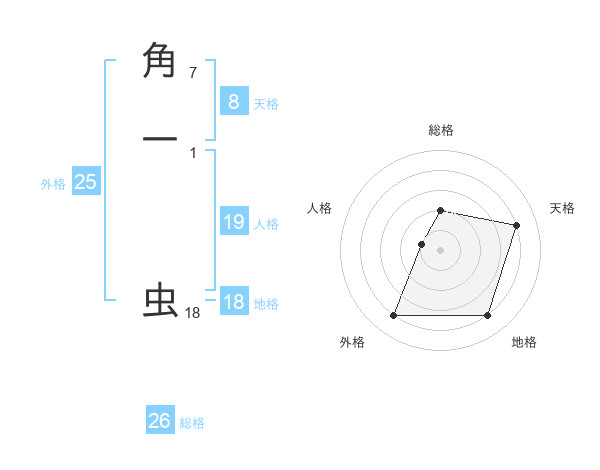 角一 虫さんの総格は26画の2点!