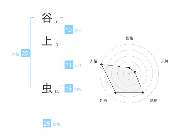 谷上 虫さんの総格は28画の1点!