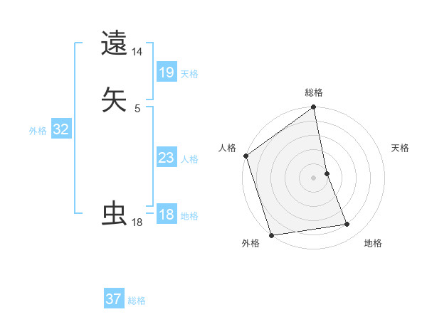 遠矢 虫さんの総格は37画の5点!