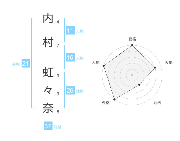 内村 虹々奈さんを姓名の画数から五運を鑑定