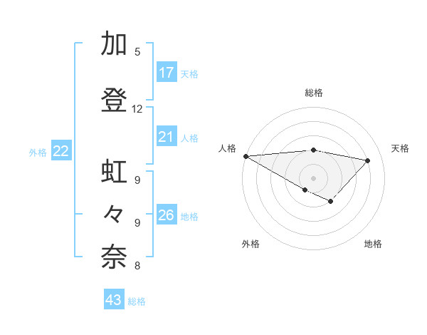 加登 虹々奈さんの天格は17画の4点!
