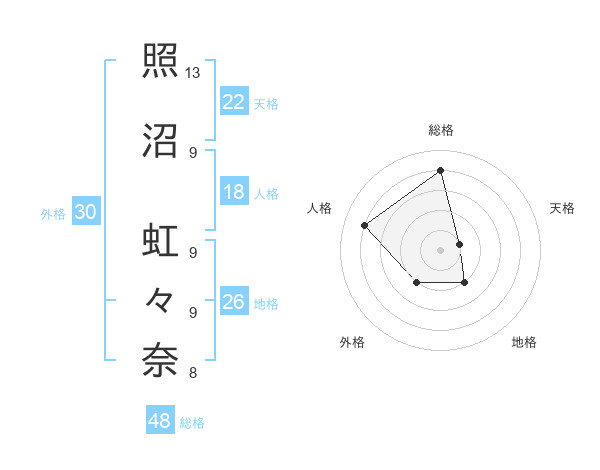 照沼 虹々奈さんを姓名の画数から五運を鑑定