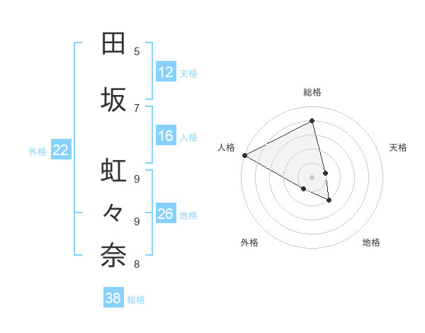 田坂 虹々奈さんを姓名の画数から五運を鑑定