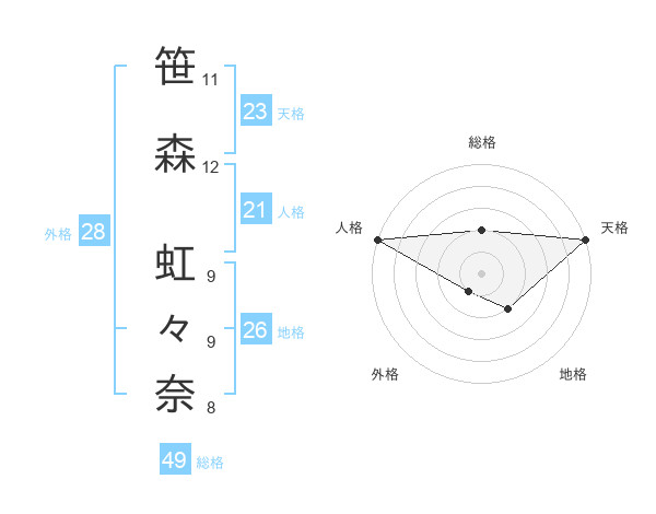 笹森 虹々奈さんを姓名の画数から五運を鑑定
