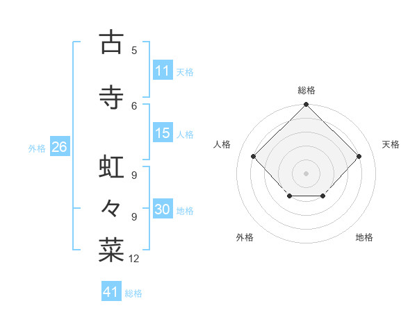 古寺 虹々菜さんを姓名の画数から五運を鑑定
