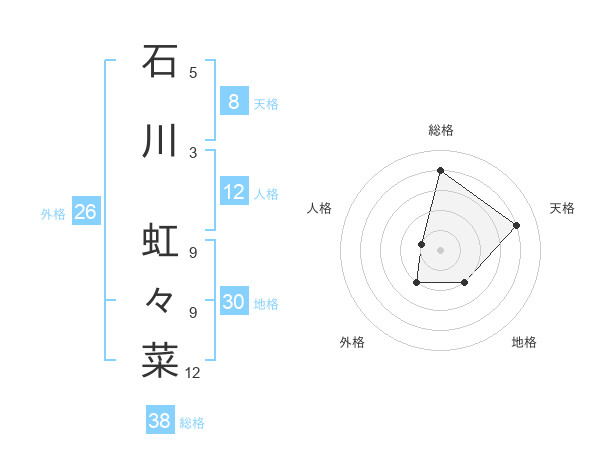 石川 虹々菜さんの総格は38画の4点