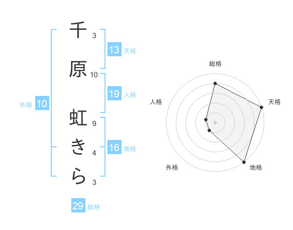 千原 虹きらさんの天格は13画の5点!