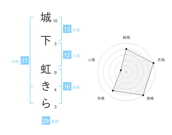 城下 虹きらさんを姓名の画数から五運を鑑定
