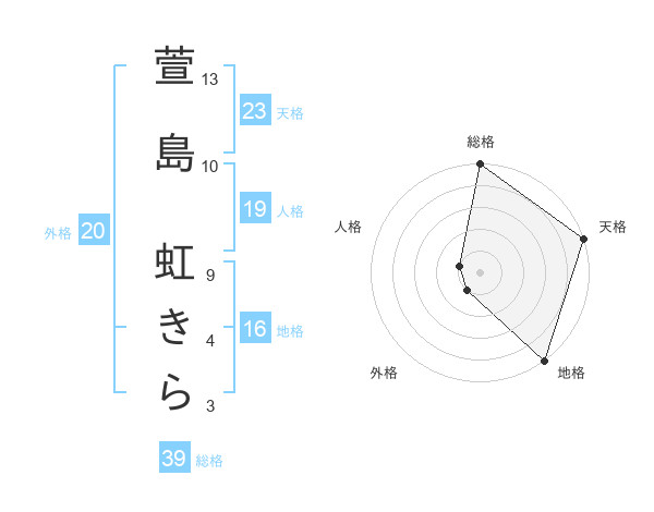 萱島 虹きらさんの総格は39画の5点!