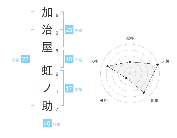 加治屋 虹ノ助さんを姓名の画数から五運を鑑定