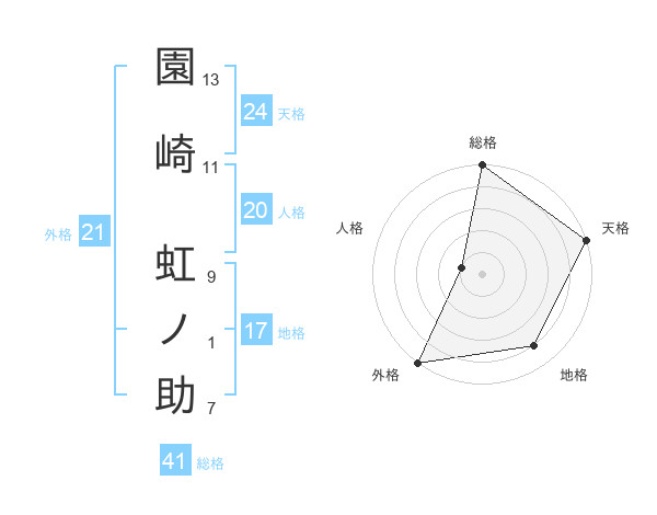 園崎 虹ノ助さんの外格は21画の5点!