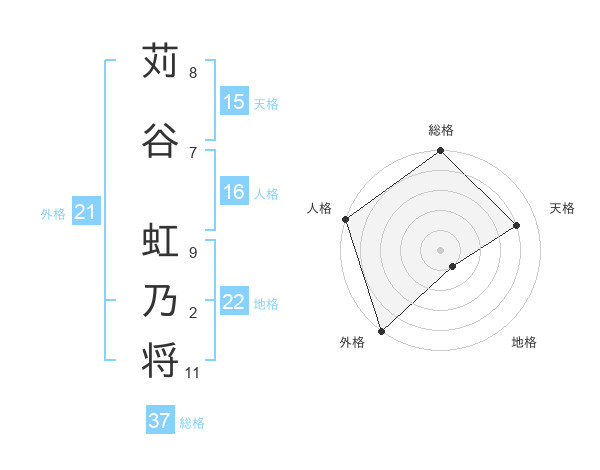 苅谷 虹乃将さんを姓名の画数から五運を鑑定