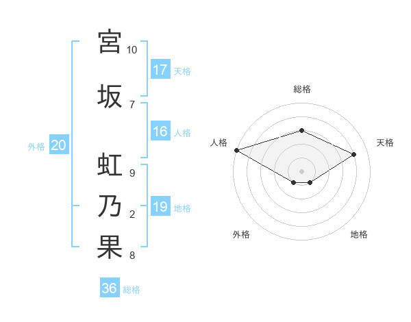 宮坂 虹乃果さんを姓名の画数から五運を鑑定