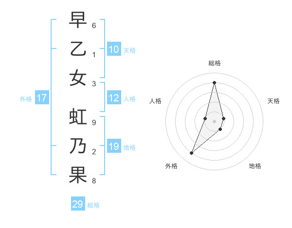 早乙女 虹乃果さんの総格は29画の4点!