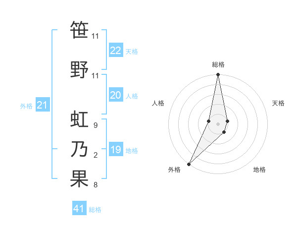 笹野 虹乃果さんを姓名の画数から五運を鑑定