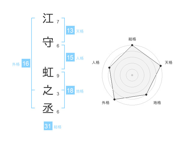 江守 虹之丞さんを姓名の画数から五運を鑑定