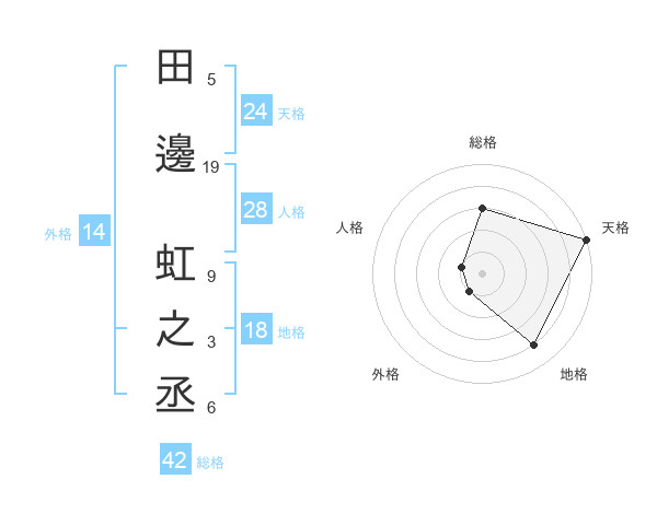 田邊 虹之丞さんを姓名の画数から五運を鑑定