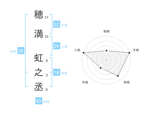 穂満 虹之丞さんの総格は50画の2点!