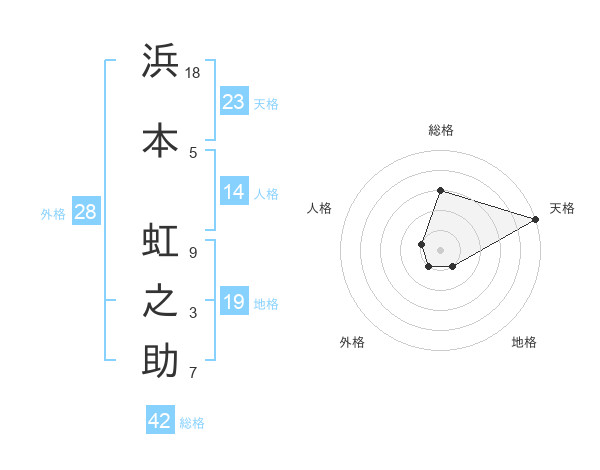 浜本 虹之助さんを姓名の画数から五運を鑑定