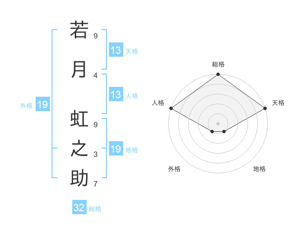 若月 虹之助さんの天格は13画の5点!