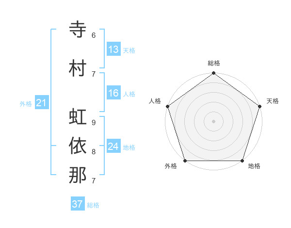 寺村 虹依那さんを姓名の画数から五運を鑑定