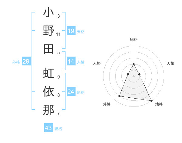 小野田 虹依那さんの総格は43画の2点!