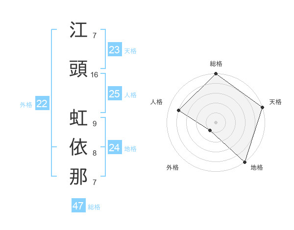 江頭 虹依那さんを姓名の画数から五運を鑑定