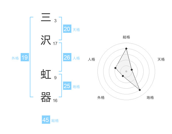 三沢 虹器さんの総格は45画の4点!