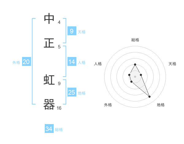 中正 虹器さんの総格は34画の2点!