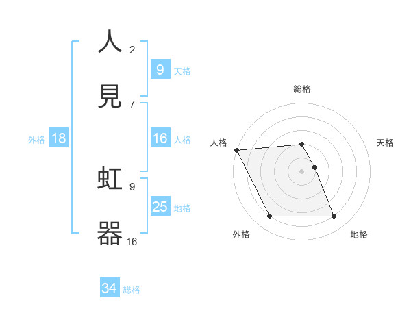 人見 虹器さんの総格は34画の2点!